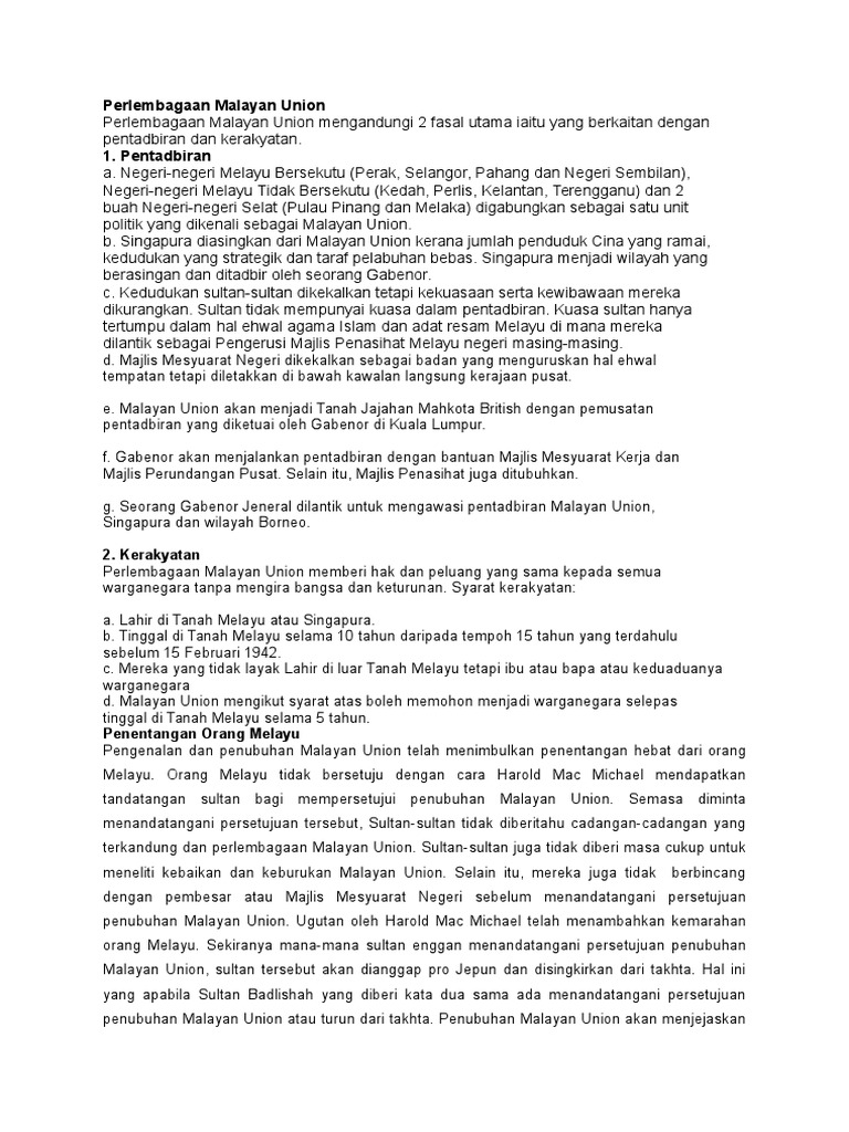 Kawal kuasa politik melayu yang bekerjasama dgn jepun. Learn vocabulary, terms and more with flashcards, games and other study tools. Membentuk bangsa malayan union supaya golongan imigran menumpukan kesetiaan. Malayan union dan persekutuan tanah melayu. Part of a series on the.