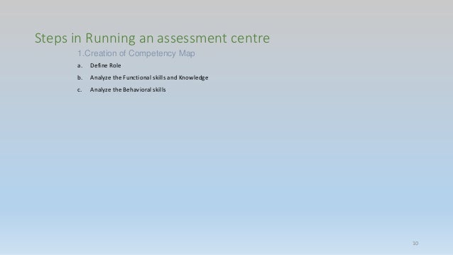 Assessment centres are highly structured in their design, application and assessment procedure and are specifically adapted to assess factors such as your level of skills presentation competencies: Looking for assessment centre tips? I thought assessment centers were more fun and diverse than the standard interviews you go through. I thought the test would be really simple and easy after taking the practice test. Competency assessment using psychometric test.
