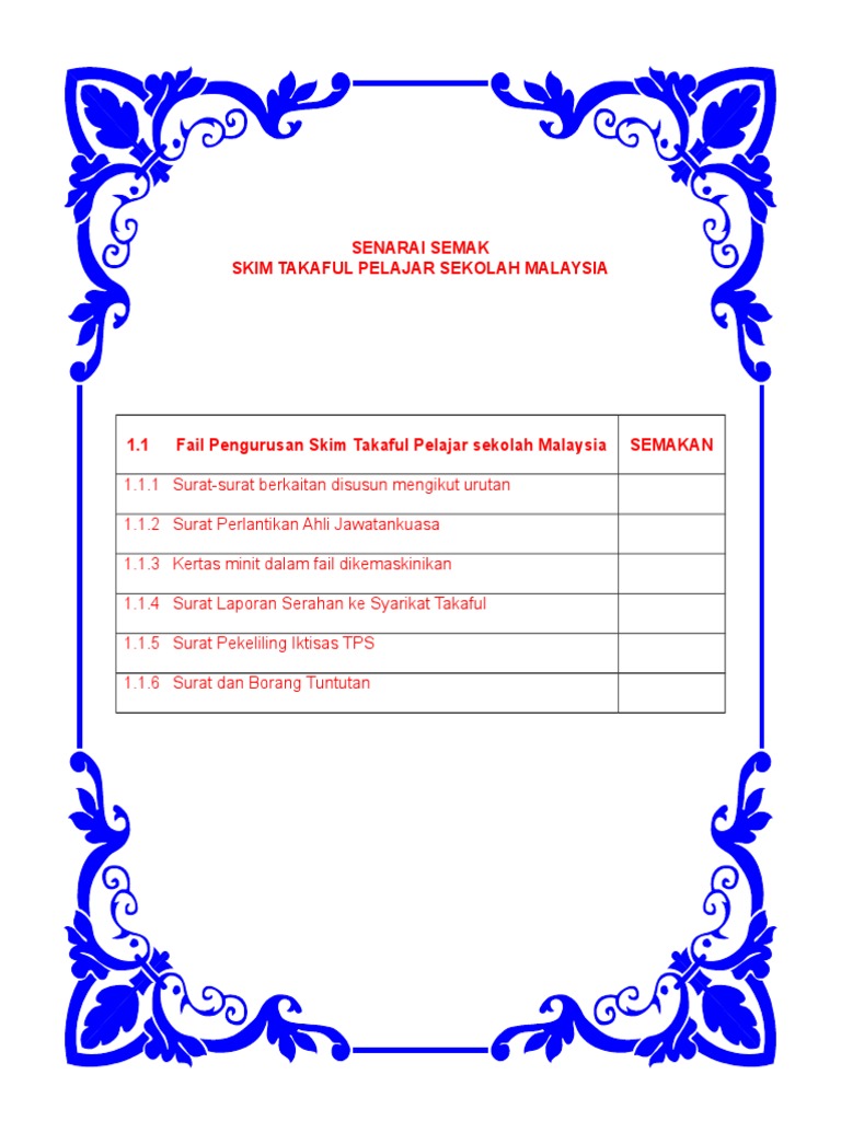 31,703 likes · 702 talking about this. Pelaksanaan skim takaful pelajar sekolah malaysia ( tpsm ) bagi murid prasekolah, sekolah rendah, sekolah menengah dan tingkatan. Mysalam merupakan sebuah inisiatif skim takaful perlindungan kesihatan percuma oleh kerajaan yang memberikan perlindungan takaful kepada individu yang layak menerima manfaat skim perlindungan masyarakat mysalam melalui tabung amanah mysalam. Mohdelam.com 158 views9 year ago. Satu salinan muka depan buku bank islam malaysia berhad (bimb) tanpa kad. Takaful pelajar sekolah malaysia (tpsm). Skim takaful pelajar sekolah malaysia (tpsm) diperkenalkan oleh kerajaan dan perlindungan ini dibayar oleh kementerian pendidikan malaysa (kpm) melalui bahagian kewangan kementerian itu terus kepada syarikat takaful malaysia sdn bhd. Takaful malaysia, kuala lumpur, malaysia. Skim takaful pelajar sekolah malaysia (tpsm). Selain itu, skim takaful hayat juga boleh membantu keluarga anda dalam bentuk bantuan kewangan untuk keluarga anda meneruskan kehidupan anda selepas ketiadaan anda. Objektif skim takaful pelajar sekolah malaysia (tpsm). Takaful's investment portfolios are strictly monitored by the shariah advisory board to prevent violations against the fundamental islamic principles. Untuk muat turun, folder sila klik disini.